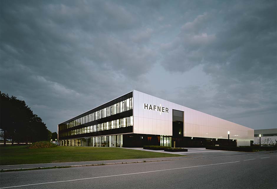 Bereits 1928 wurde das familiengeführte Unternehmen „Philipp Hafner GmbH & Co. KG“ gegründet und agiert seither stets zukunftsorientiert. 2015 entstand der hier zu sehende ansprechende Neubau in Fellbach. Angestrebt war ein Gebäude als CI des Unternehmens und kein Gebäude welches zusätzlicher Elemente wie Fahnen oder Schilder im Außenbereich oder Bildern im Innenbereich bedarf.