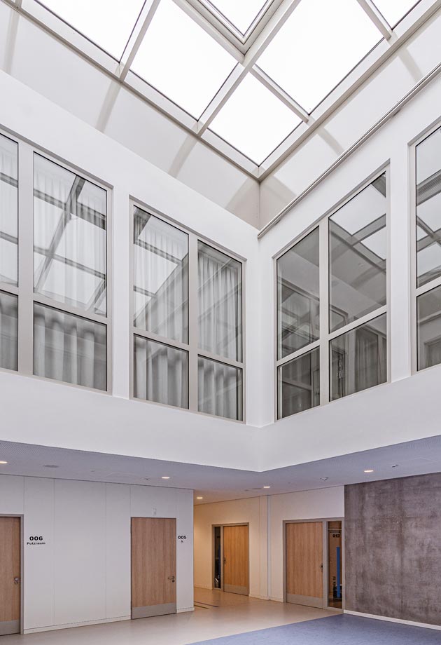 Zwei Atrien sorgen für lichtdurchflutete Begegnungszonen