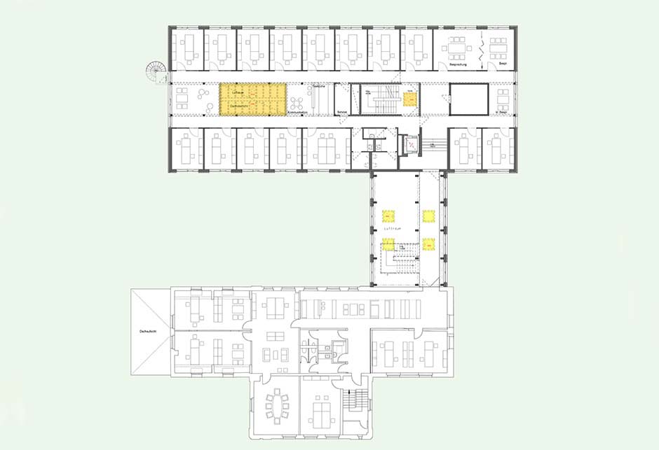 Bei der Erweiterung der Behörde blieb das historische Hauptgebäude aus dem Jahr 1923 erhalten, der zusätzliche Raumbedarf konnte mit einem Annexbau realisiert werden.