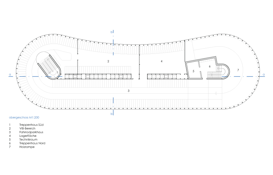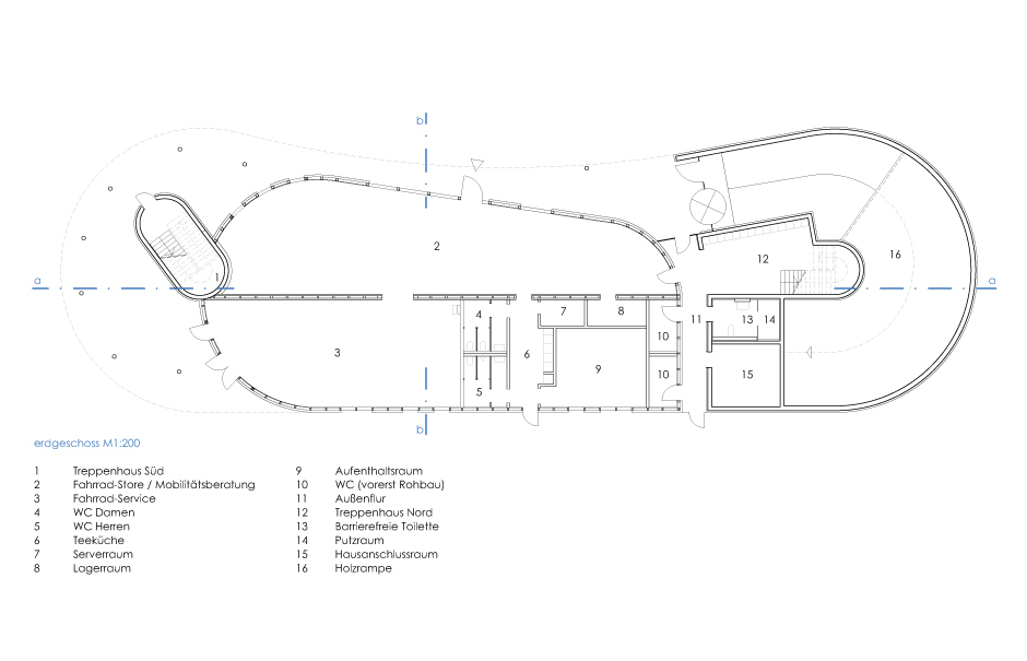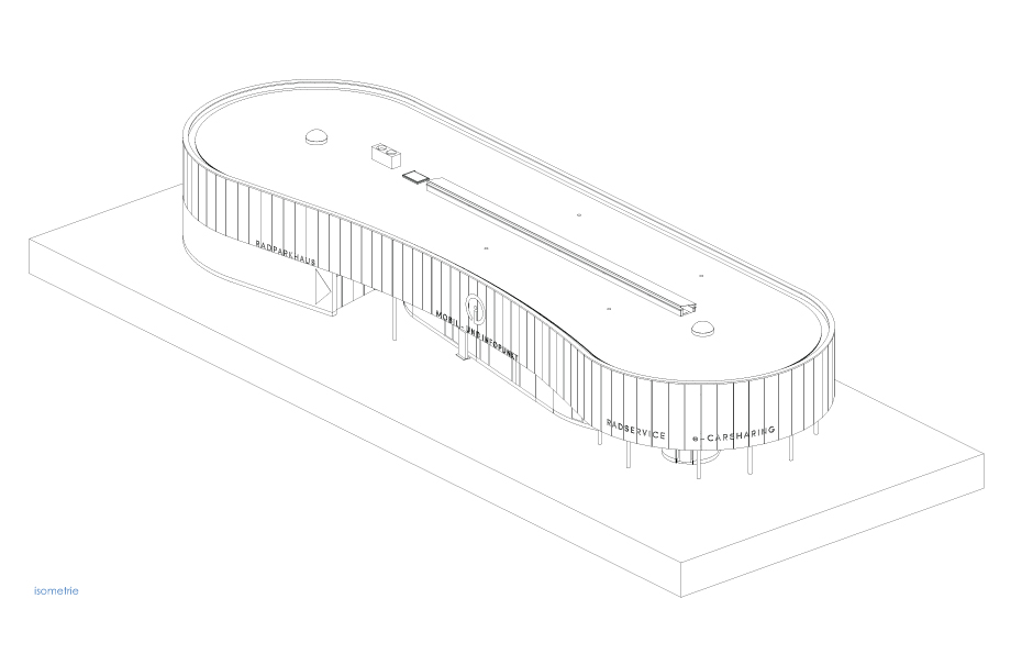 Das neuartige Konzept der Mobilitätsstation dient als Projekt mit Vorbildcharakter: Es soll Anreize für eine klimafreundliche Mobilität schaffen und durch seine Architektur selbst als Vorreiter für klimafreundliches und CO2 sparendes Bauen stehen. Im Erdgeschoss befindet sich auf ca. 1.000 m2 Grundfläche ein E-Mobilitäts-Dienstleistungszentrum mit Stadtinfo, ein Fahrrad-Verleih mit Reparaturservice sowie Lade-Stationen für E-Bikes und PKWs. Ein Aufenthaltsraum für die Fahrer der städtischen Busgesellschaft sowie eine barrierefreie Toilette ergänzen das öffentliche Angebot. Im darüberliegenden Geschoss des Rampenbauwerks sind auf etwa 780 m2 Fläche beidseitig der Fahrstraße 224 Fahrradparkplätze angeordnet, deren Anzahl bei Bedarf noch mehr als verdoppelt werden kann. Die Dachfläche besteht aus ca. 800 m2 Gründach, das klimafreundlich als Verdunstungsfläche zu einem positiven Stadtklima beiträgt.