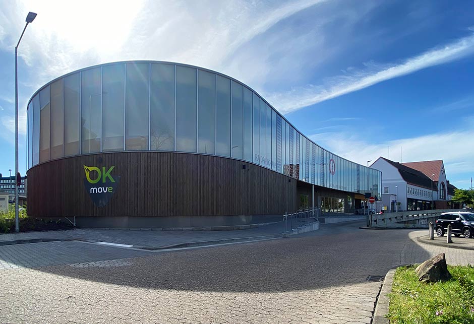 In der Nähe des Bad Kreuznacher Bahnhofs ist ein außergewöhnliches Fahrradparkhaus entstanden: Als Mobilitätstation dient der organisch geformte Holz-Glas-Bau als Parkhaus für bis zu 400 Räder und E-Bikes sowie als Dienstleistungs- und Beratungszentrum rund um E-Mobilität. Die Fassade des Mobil- und Infopunkts (MIP) wurde mit dem BA-Verglasungssystem von VELUX Commercial mit Verbundsicherheitsverglasung und teils fassadenintegrierter Photovoltaik ausgestattet.